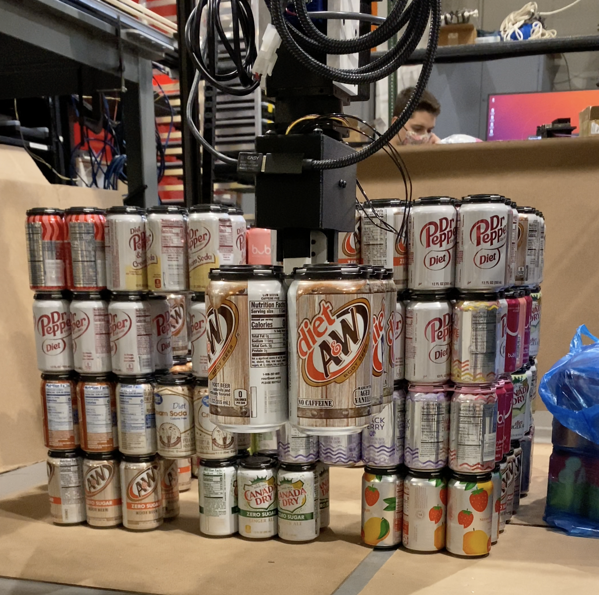 This is a demo of the general control sequence for grabbing cans. As shown, the end-effector travels down until it makes contact with the can at which point it closes the gripper fingers. From here, it raises to a certain height to take the can to its placement position, and then repeats the previous process but instead opening the gripper fingers.